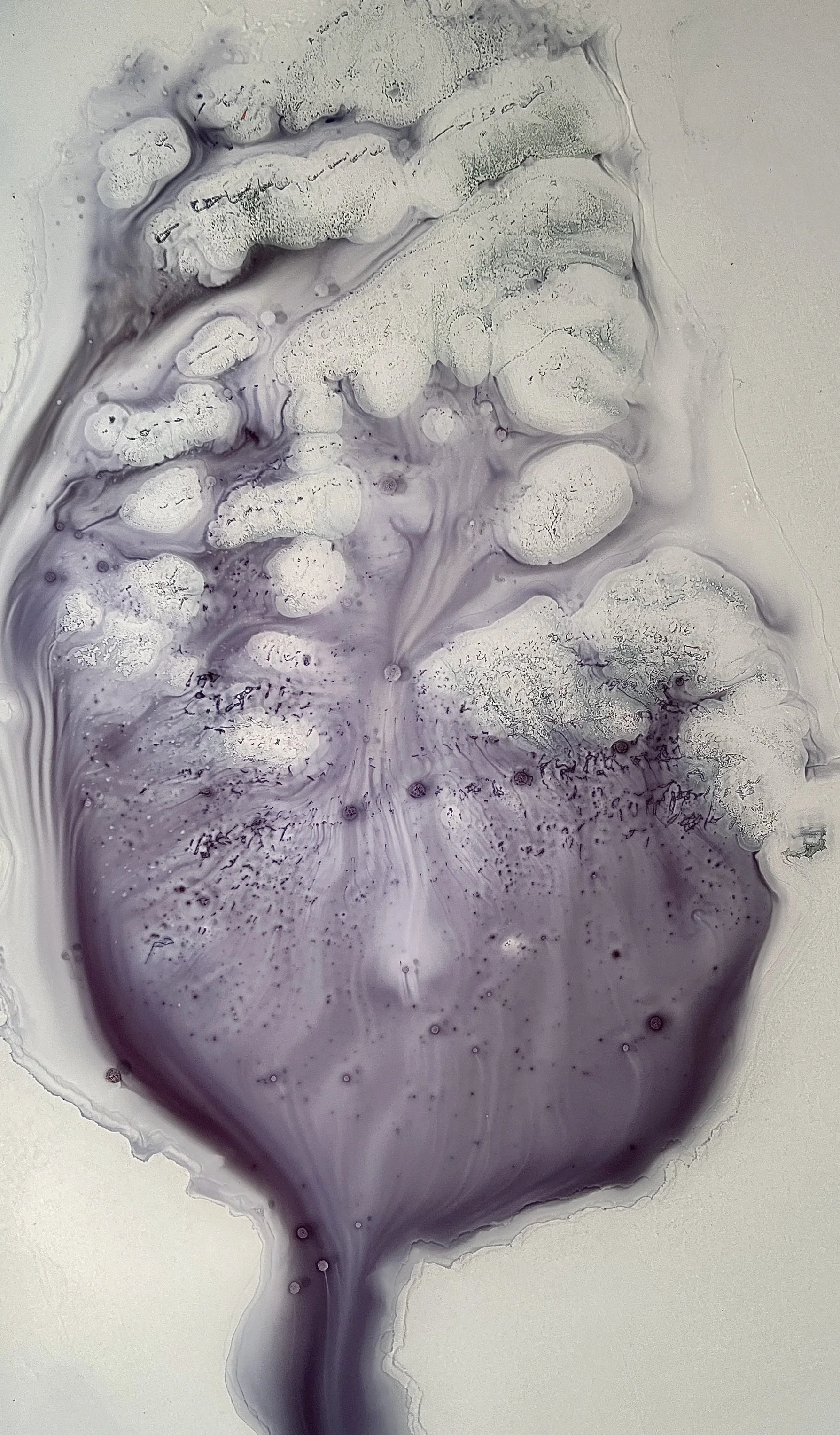 During the winter of 2024, I began experimenting with slime mold in my studio. Slime molds have gained notoriety recently because they handily disrupt the edges of what humans can understand. These billion-year old single cell organisms have over 700 sexes. One engineered a plan fpr the Tokyo subway system in only 26 hours (humans worked on it for decades). Speaking of mapping, NASA simulates them to map the dark matter holding the Universe together.